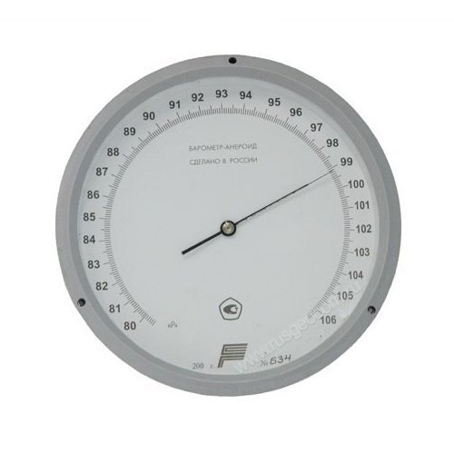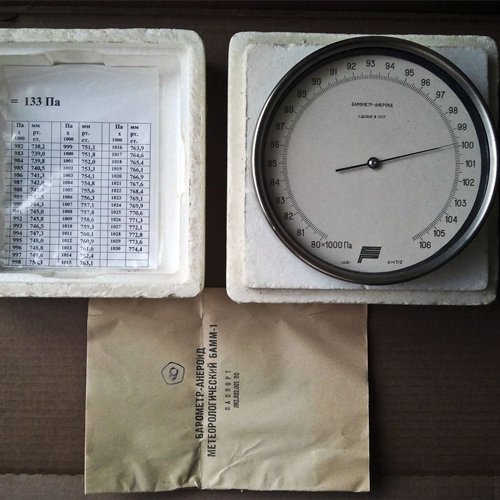 Барометр-анероид метеорологический БАММ-1 измеряет в пределах 79,8 ... 106,6 кПа (600 ... 800 мм рт. ст.) с шагом 1 кПа. В паспорте находится первичная поверка.