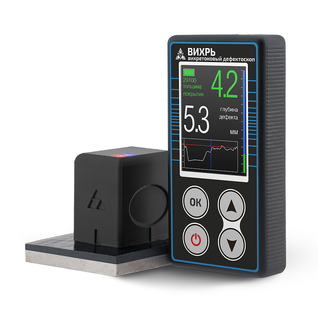 Многофункциональный магнитно-вихретоковый дефектоскоп Вихрь выявляет и измеряет глубину стресс-коррозионных трещин в металлических ферромагнитных конструкциях, в том числе под слоем коррозии и/или защитного покрытия., а также толщину изоляции. Измерения проводятся с минимальной погрешностью.